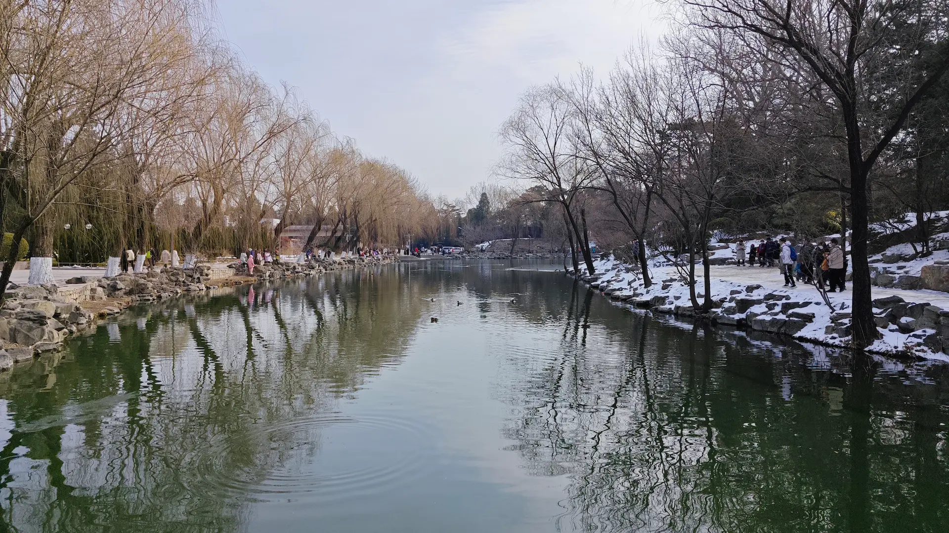 清华里的环境还是很好的。我们去的时候正好还有点雪,校园里到处都是白茫茫的一片,很壮观。